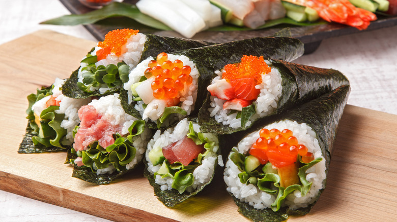 Fish is a source of iodine, an essential micronutrient, especially saltwater fish such as cod, shrimp, tuna, and scallops. Even the imitation crabmeat used by many Japanese restaurants in sushi rolls is iodine-rich, made of a mixture of pollock (a member of the cod family), according to Medical News Today. Combine it with a nori wrap, and you've got yourself a whole lot of iodine in one dish.
