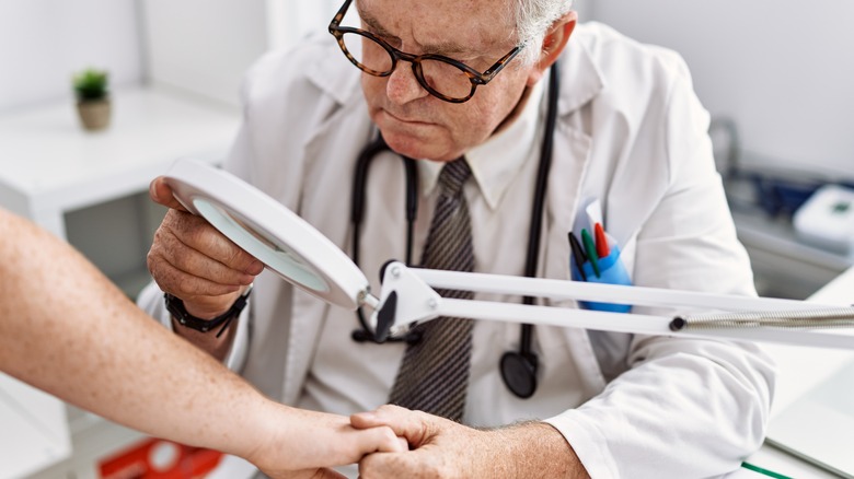 If you have an HPV infection that is causing skin or mucosal warts, a doctor can typically make a diagnosis just by examining them. According to the American Academy of Dermatology Association (AAD), very rarely, a doctor may take a sample of your wart and send it to the lab (i.e., skin biopsy) to confirm the diagnosis. Women with genital warts and women who are being screened for HPV may be further assessed by a doctor using the visual inspection with acetic acid (VIA) test, a Pap smear, or a DNA test. The VIA test is done by applying vinegar to genital areas with suspected HPV. Areas that turn white are considered positive and will need further testing. A Pap smear is done by swabbing the cervix and vagina and sending the sample to the lab. The sample is examined for the presence of abnormal cells that may lead to cancer. A DNA test can detect high-risk strains of HPV in the cells of the cervix, and is recommended only for women 30 years and older, in combination with the Pap test (via the Mayo Clinic). Men with genital warts don't usually undergo any testing, although for high-risk individuals, a doctor may decide to swab the anal region to check for HPV (per Medical News Today).