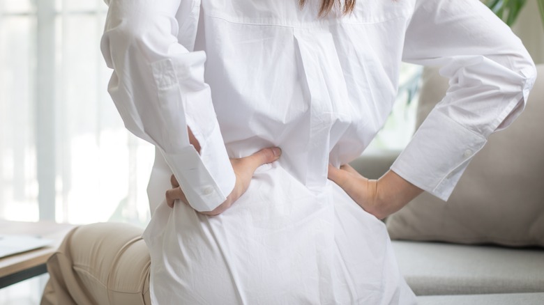 Pelvic pain and/or pain during intercourse are common warning signs of ovarian cancer that may be overlooked. Such pain can appear in various locations, including the pelvis, abdomen, hips, and back, or can manifest during sex (via Williamette Valley Cancer Institute and Research Center). According to the University of Texas Health, pain or tenderness is very common in patients with growing tumors. Often the pain may resemble period cramps, which can cause someone with this symptom to assume it's a normal part of their cycle. The size of the tumor and the organs or area it may be pressing on strongly influence the pain's location, type, and intensity.