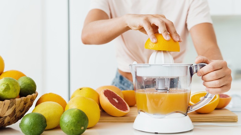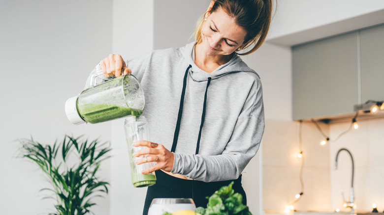 Fruit has numerous health benefits, but when it comes to adding it to your protein shake, there are some essential things to keep in mind. First, it's worth understanding the difference between consuming whole fruit and fruit juice. While fruit juice might seem like a healthy choice, it's more concentrated in sugars than whole fruit. Making just one cup of apple juice can take as many as three apples (per the Heart and Stroke Foundation of Canada). Whole fruits also contain fiber, which helps slow down sugar absorption and stabilize blood sugar levels (via the CDC). Fiber can also contribute to a feeling of fullness and satisfaction, making it easier to resist the temptation of sugary foods and beverages.