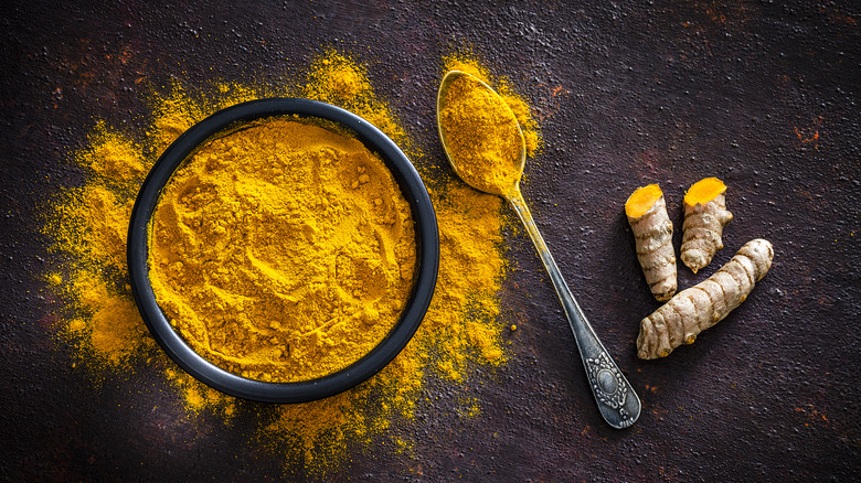 Turmeric is one of those spices that instantly brighten up your dishes, owing to its bright yellow hue. It has an earthy flavor combined with some hints of ginger and pepper and makes a great addition to lattes, teas, curries, soups, pasta dishes, and smoothies. But be mindful of supposedly healthy turmeric lattes offered at cafes, warned registered dietitian Victoria Taylor (via British Heart Foundation). "They often come with added ingredients that are high in saturated fat or sugar."