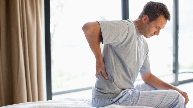If back pain isn't addressed, it can also make future sex sessions uncomfortable. For people who suffer from back pain, Medical News Today suggests considering some less adventurous sexual positions that may take some pressure off of the lower back. Positions such as side-by-side or spooning may help ease some of the back pain. If you are the one experiencing the discomfort, you could also consider lying on your back and having your partner on top, using a small towel to help keep your spine in a neutral position.