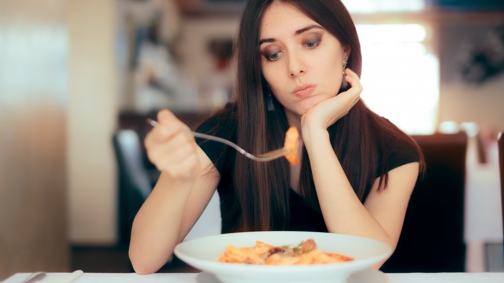 If downing apple cider vinegar has you feeling perpetually full, it's no coincidence. Turns out that the ingredient can slow down the digestion process, as revealed in a 2013 report published in the International Journal of Obesity. This may result in suppressing your appetite or keeping you satiated from smaller meals for longer. However, this is not necessarily a thing to celebrate. Many people who drink apple cider vinegar report subsequent nausea spells. This often further drives a person's inability to eat.