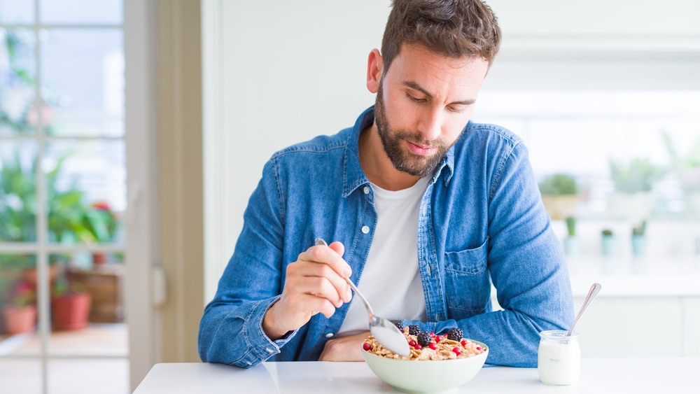 Breakfast cereal is as old as time — well, at least as old as the 19th century. Cereal is such a basic, quick-and-easy breakfast staple; all you need is some milk of any kind. And there are all different types of cereals from which to choose — some are certainly healthier for you than others (we're looking at you Count Chocula). Unfortunately, while many cereal boxes are full of bold claims of being super good for you, most cereals aren't all they're cracked up to be. According to Healthline, many types of cereals don't actually give you that all-day energy they promise.