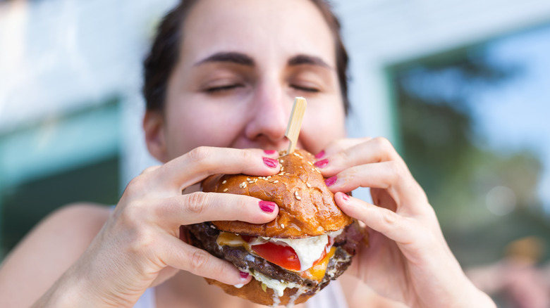 Cheese tastes good, and it feels good to eat cheese. In fact, cheese can be addicting for many people. When you eat it, your body is slow to digest the protein casein, which breaks down into casomorphins (via Healthline). Casomorphins can actually attach to dopamine receptors in your brain, also known as the feel-good hormones that trigger feelings of pleasure and reward, according to research published in Food and Nutrition Research.