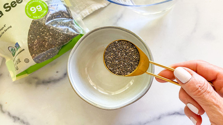 - Combine the chia seeds with 3 tablespoons of water and stir well.