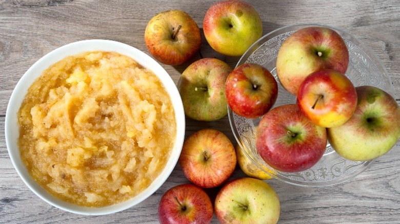 Given that apples are its primary ingredient, applesauce provides similar health benefits as the fruit. According to Healthline, applesauce generally tends to be low in calories, fat, and salt. Additionally, applesauce can contain certain amounts of fiber, vitamins, minerals, and antioxidants, depending on the type of apples used, how the applesauce was processed, and if the peels were included in the mix. Applesauce made with peels, for example, will have more fiber. Experts also believe that apple peels contain high levels of antioxidants. Additionally, applesauce may be best known as the A in the BRAT diet (bananas, rice, applesauce, toast), a home remedy many Americans have turned to when attempting to ease an upset stomach.