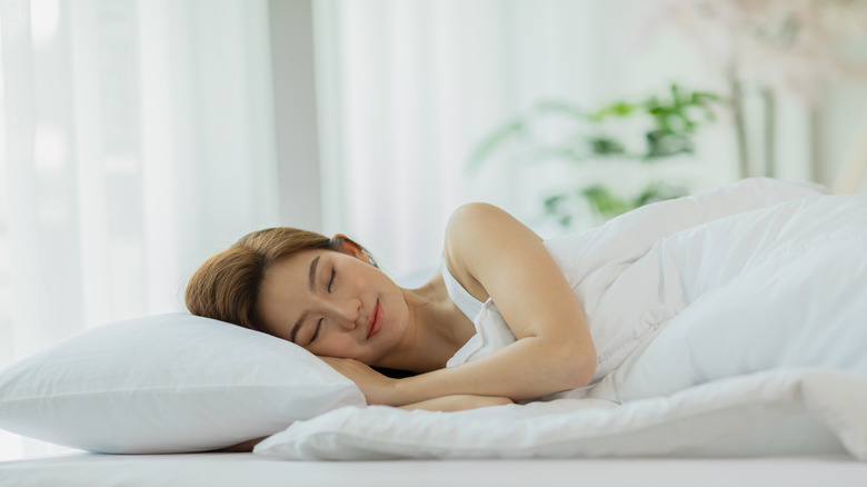 Researchers believe these effects are due to the way a warm bath affects the body's circadian rhythm — our internal system of regulating body temperature and sleep cycles over a 24-hour period. Your core body temperature naturally starts to cool down in the evening about two hours before you typically go to sleep. Soaking in a warm bath can actually speed up this dip in body temperature, signaling your body that it's ready for bed (via Sleep Foundation).