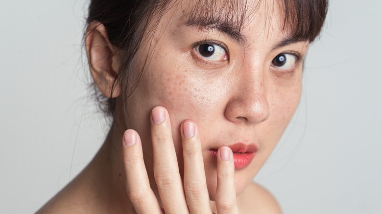 Sometimes, freckles can be symptoms of underlying conditions. In particular, a type of freckling called axillary freckling can indicate a rare, tumor-causing disease (per MedicineNet). Axillary freckling is a side effect of neurofibromatosis, a rare genetic condition that can be inherited and create a substantial number of freckles in the axillary regions, which are located around the armpit areas. According to the National Library of Medicine, axillary freckles are caused by an increased presence of melanin, just like traditional freckles. Axillary freckles, however, are distinct in that they are made up of a cluster of small, dark freckles on armpit skin.