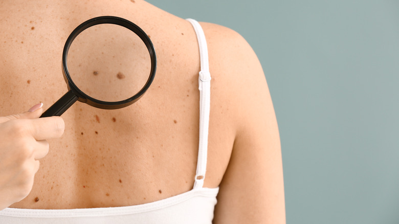 Even though freckles can become visible following time spent in sunlight, there is an extremely slim chance of freckles becoming cancerous, and they generally don't pose any threat to a person's health (via MedicineNet). However, moles aren't always as harmless, so it's important to differentiate moles from freckles and to monitor the growth and development of any moles you may have. The Centers for Disease Control and Prevention (CDC) recommends following an alphabetical method for determining the risk an individual mole poses. Use the ABCDE method to determine A for asymmetry, B for irregular borders, C for multiple colors, D for diameter, and E for whether the mole is evolving. If you notice your moles changing, consult with a dermatologist.