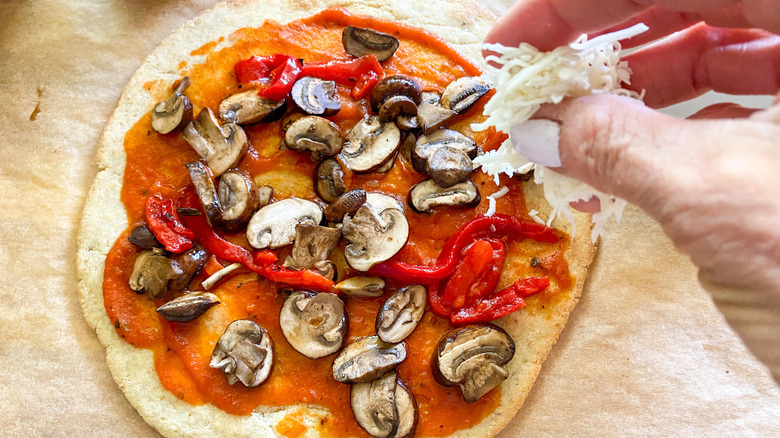 As for the rest of that pizza? "For toppings, the sky is the limit," says Hahn. For herself, she usually goes with a classic red sauce or green pesto, plus anything from mushrooms, roasted red peppers, olives, spinach, basil, onions, pineapple, or garlic. And of course, cheese is a must. "There are many vegan cheeses on the market, so you can offer both types if any guests eat plant-based," Hahn adds. But for now, let's focus on that dough.