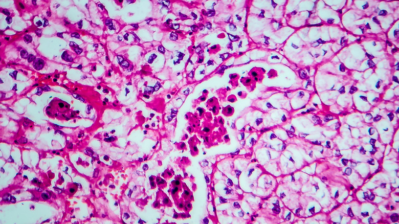 There are a number of kidney cancer types that exist (via Medical News Today). The most popular one is Renal Cell Carcinoma (RCC) which is also called renal cell adenocarcinoma or just renal cell cancer. This type occurs when cancer cells develop in your kidney tubes' lining, and they may affect one or both kidneys. The second type is renal medullary cancer which is uncommon but dangerous. In many cases, it targets the right kidney and grows pretty fast — medullary cancer "afflicts young people of African descent" who have sickle cell.